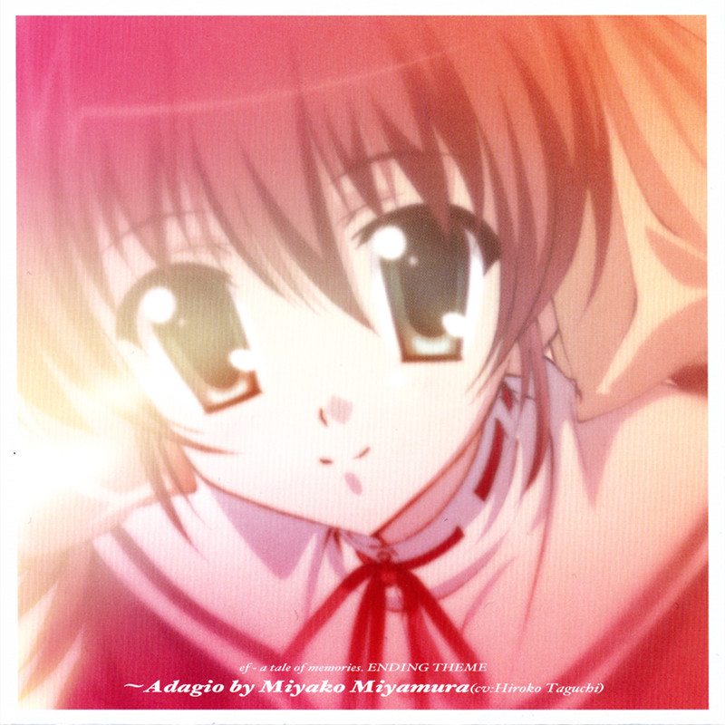 昨年冬に発売され大ヒットを記録した「ef – a fairy tale of the two.」(minori)が、待望のTVアニメ化。その主題歌が早くも発売!! 音楽は原作ゲームも手掛けた”天門”。新海誠の「ほしのこえ」「秒速5センチメートル」でも音楽を担当し、多くのファンから支持をうけるカリスマ的クリエーターが、このTVアニメ「ef – a tale of memories」の音楽を担当、OP/EDも手掛ける。EDは3キャラクターがそれぞれ歌う3種を発売。本作は「宮村みやこ」ヴァージョン!! 本編ED Ver.1、OP・みやこVer.(アレンジ変え)、ED(1)・アコースティックVer.を収録。